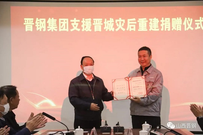 晉鋼集團捐贈1000萬元支援晉城地區災後重建