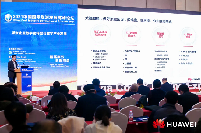 10月27日,在2021年第十九屆中國國際煤炭采礦技術交流及設備展覽會期間,華為煤礦軍團解決方案總裁蔣旺成在大會論壇上發表了題為“煤礦智能化理解與應對”的主題演講。