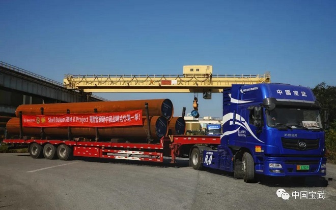 11月1日,寶鋼殼牌“碳中和”鋼鐵產品第一單——供新加坡SBM海底管線項目,X65MSO高鋼級直縫埋弧焊管1700餘噸在成品碼頭發運完畢,填補了寶鋼股份向國際石油公司批量供應抗酸海底管線的空白。至此,首次印有“碳中和”字樣的寶鋼股份鋼管產品成為海外市場靚麗的綠色名片,推動寶鋼股份海管產品市場競爭力邁上新台階。