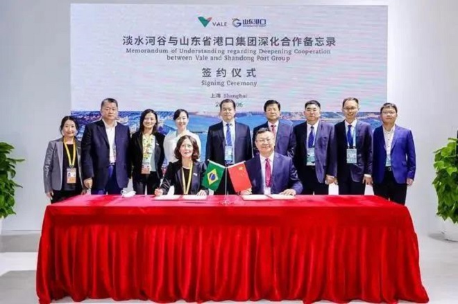 11月6日,在上海舉行的第四屆中國國際進口博覽會上,淡水河穀與山東省港口集團簽署了深化合作備忘錄。