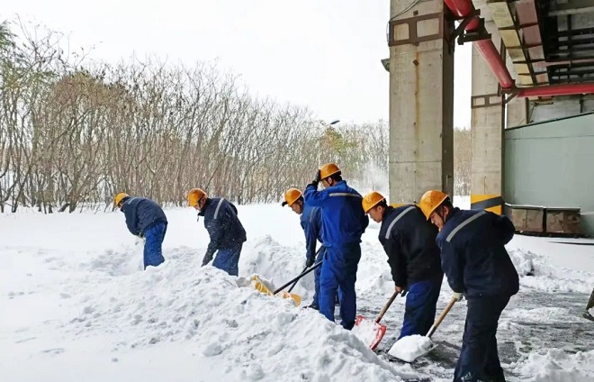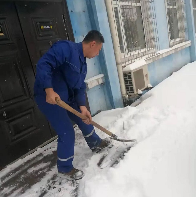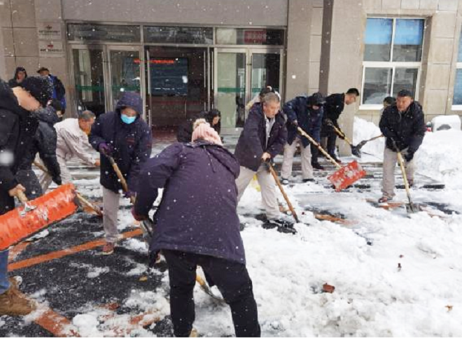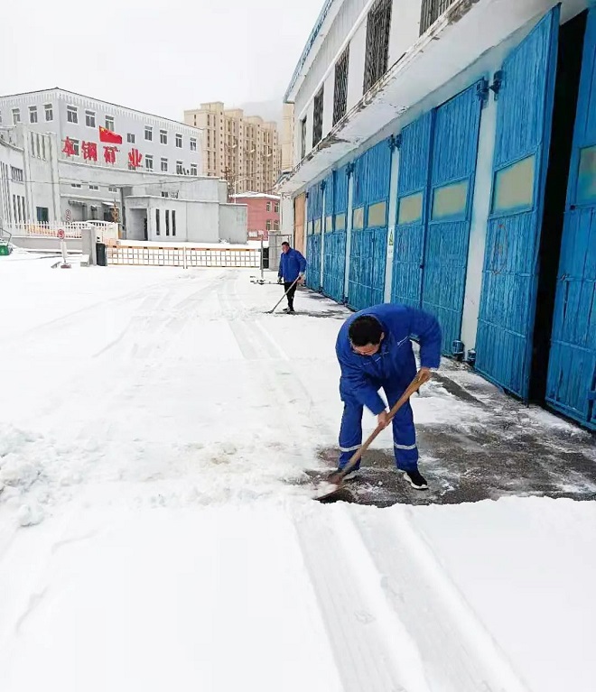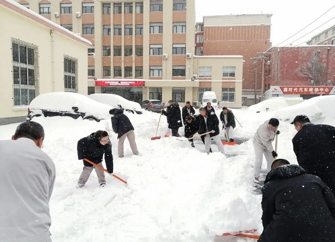 鞍鋼集團工程技術有限公司保安人員、後勤保障人員、青年團員、機關部門及各事業部員工自發清理積雪。