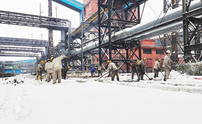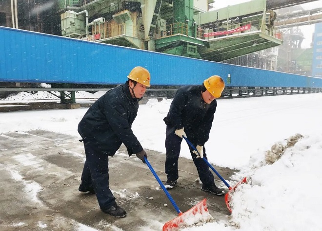 朝陽鋼鐵職工奮力掃雪保產,消除設備故障隱患。
