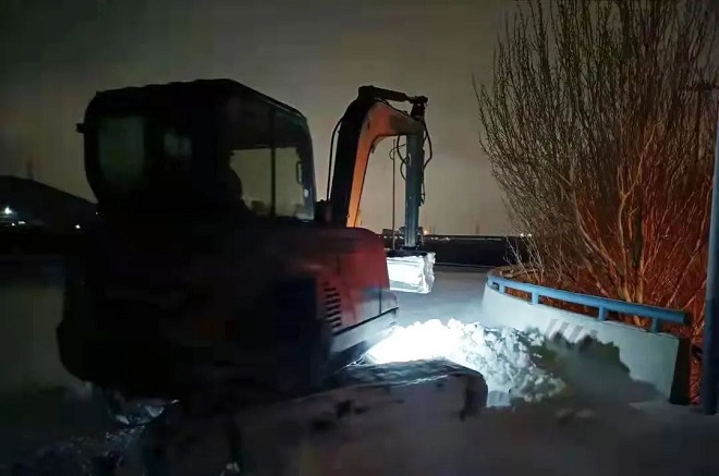 鞍鋼工程發展建設公司啟動鏟車、挖掘機等設備,浴“雪”奮戰,全力保障各基地出行暢通、施工生產平穩有序進行。