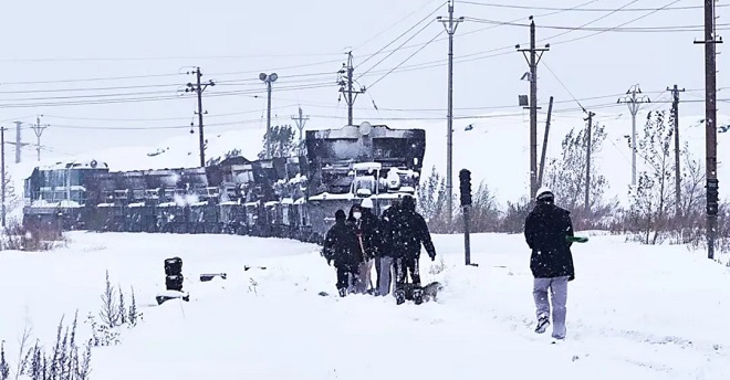 鞍鋼礦業弓礦鐵運公司全體幹部職工團結一心,確保在極端惡劣天氣下礦區鐵路運輸生產安全暢通。