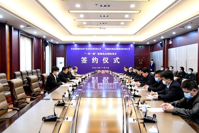 11月4日上午,武安新峰公司與成都建材院的“一帶一路”新峰埃及鋼鐵項目在武安市舉行簽約儀式。武安市委書記劉浩峰出席簽約儀式。中建材成都建築材料設計研究院有限公司董事長焦烽、建行邯鄲分行行長索理、武安新峰循環經濟產業投資發展有限公司董事長田海奎出席儀式。發改、商務、科工等有關單位負責同誌參加。武安市委常委、常務副市長張國群主持簽約儀式。