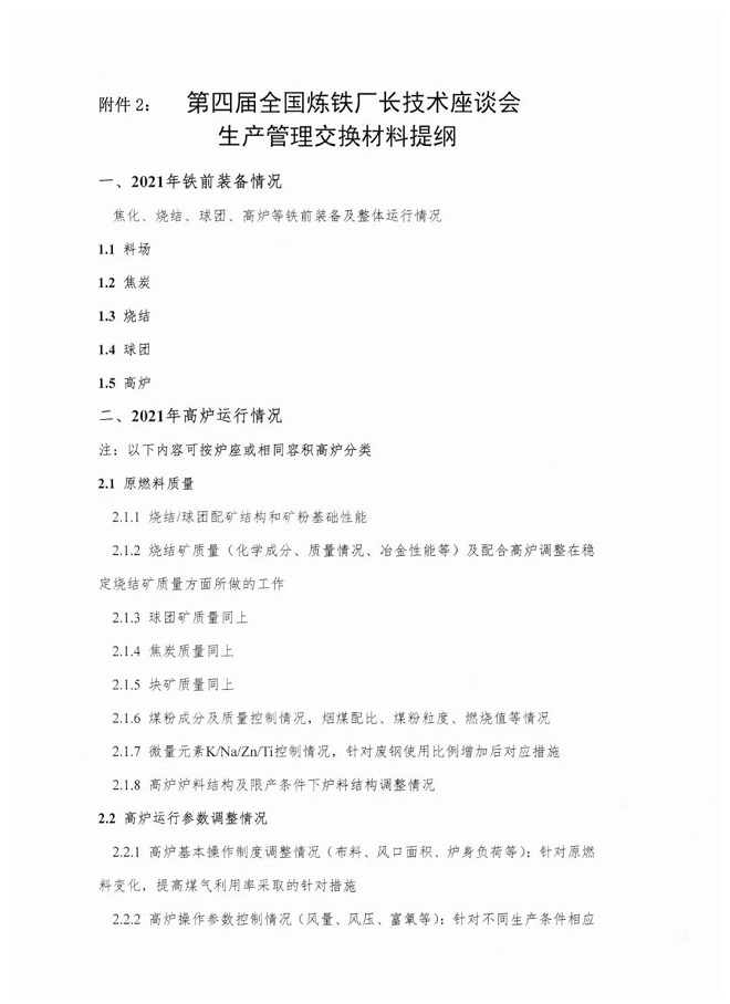 1. 總結2021年各單位煉鐵生產運行和技術創新情況(具體見附件2:交換材料提綱)。