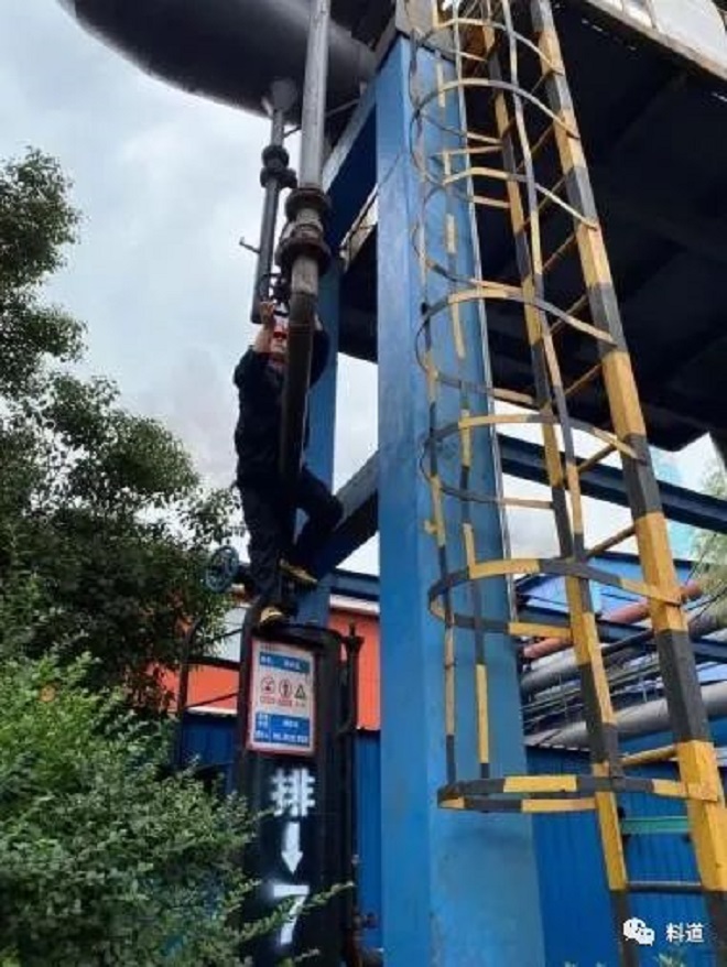另外,在檢查過程中,明查暗訪組發現其中一高處排水器排水管閥門未設置操作平台,開關操作耗時長、難度大。現場工作人員對操作過程進行了演示,隻見其雙手扶梯攀援而上,繞過第一個排水閥,半蹲半站才能開關另一個排水閥。