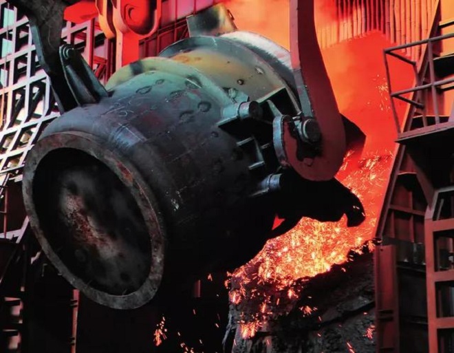 圖為鞍鋼集團朝陽鋼鐵有限公司煉鋼廠120噸轉爐正在兌鐵作業