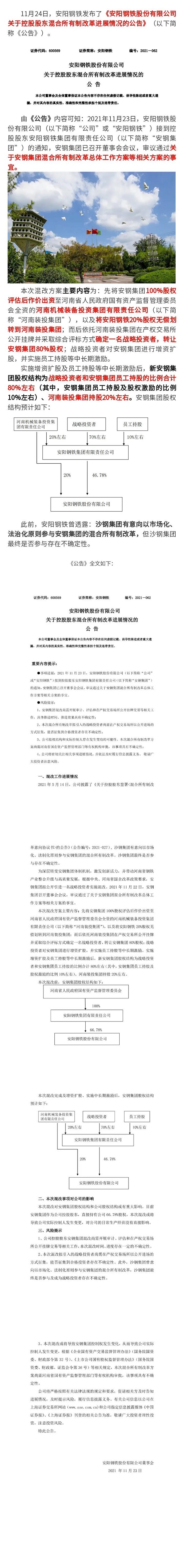 安陽鋼鐵披露混改進展