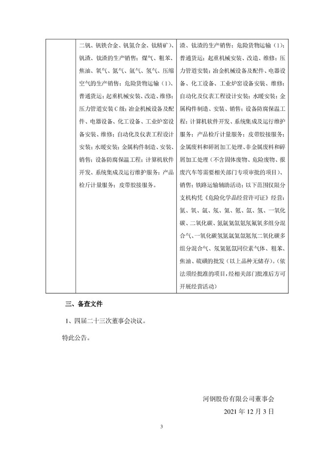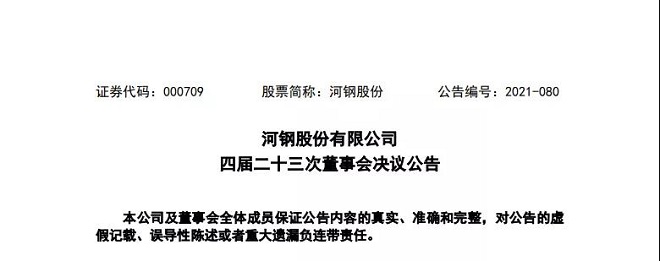 12月3日,河鋼股份發布了《河鋼股份有限公司四屆二十三次董事會決議公告》(以下簡稱《公告》)。