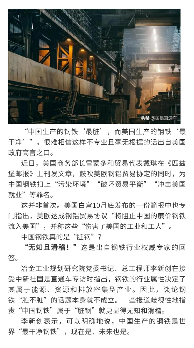 美國的鋼鐵最幹淨?鋼鐵專家一句話回懟