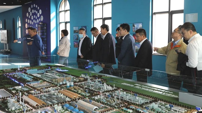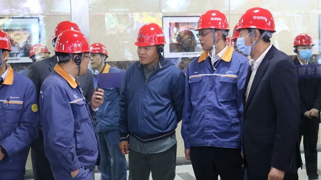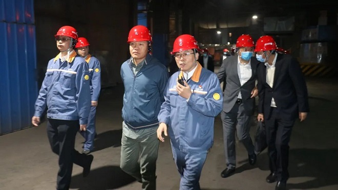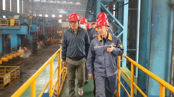 在鄂城鋼鐵,丁立國一行參觀了煉鋼廠、軋材廠、煉鐵廠、花溪濕地、操業集控中心等,對鄂鋼生產裝備、產品、綠色工廠建設、智慧製造推進情況進行全麵了解。