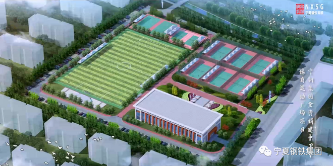 由寧夏鋼鐵集團捐建,項目已開工,新建2460.36平方米綜合訓練館1座,建設標準足球場1個、籃球場2個、網球場6個、排球場2個,配套道路、供排水、綠化、亮化等附屬設施。