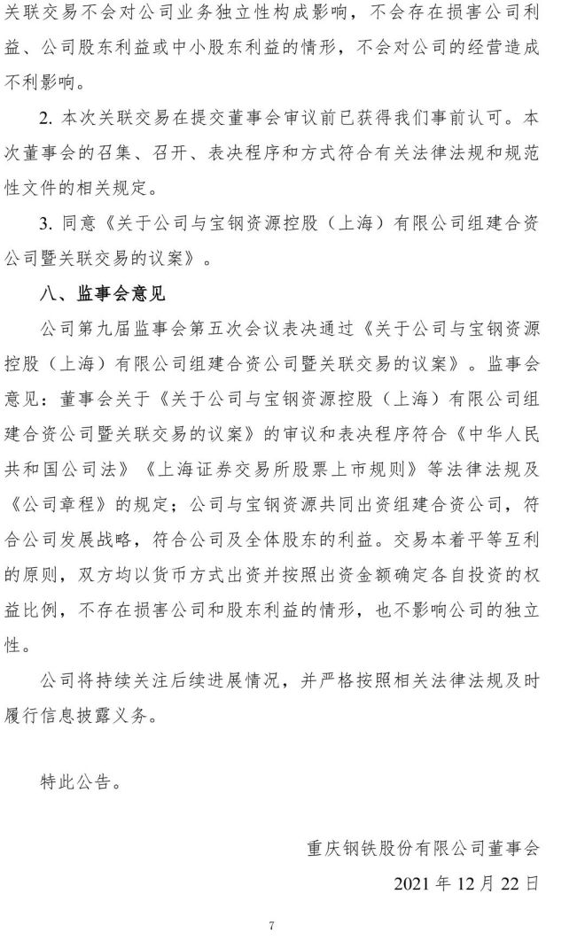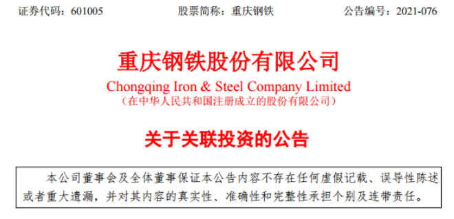 12月22日,重慶鋼鐵股份有限公司發布了《重慶鋼鐵股份有限公司關於關聯投資的公告》(以下簡稱《公告》)。