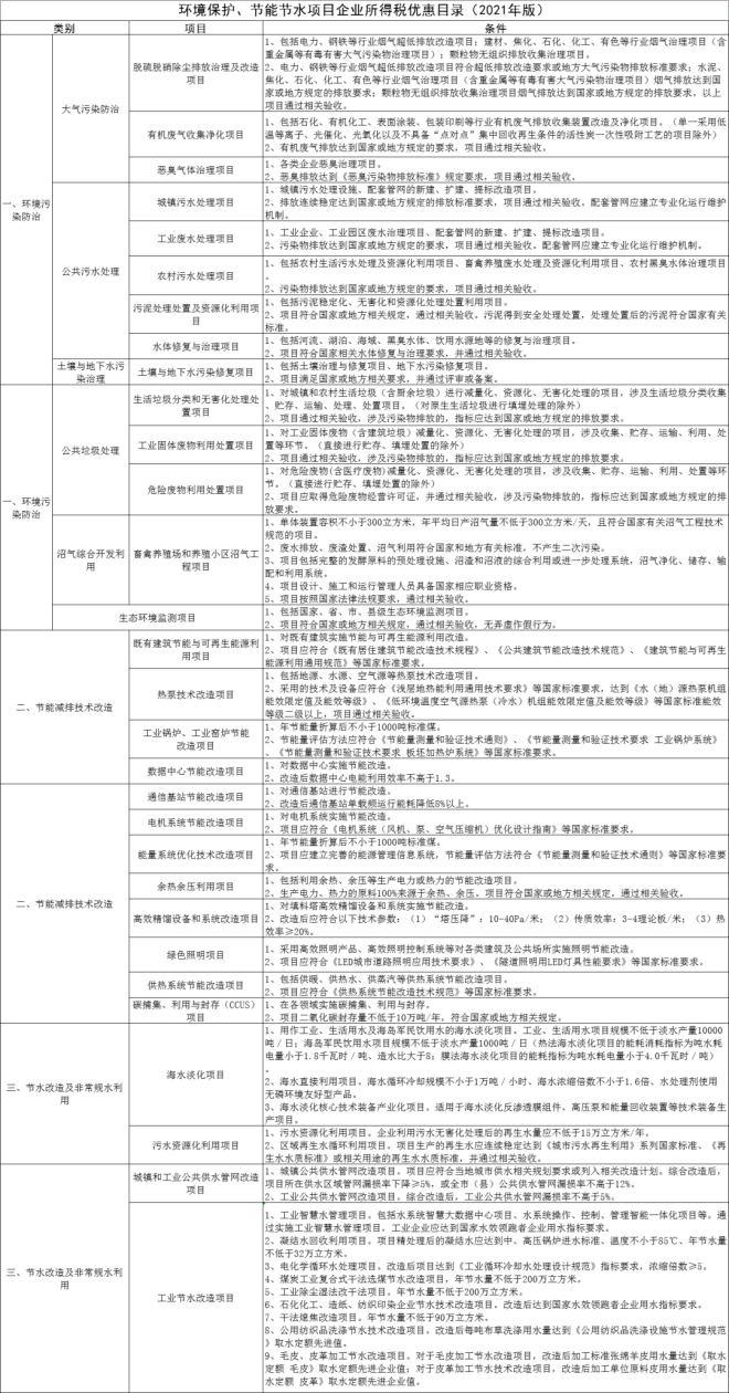 一、《環境保護、節能節水項目企業所得稅優惠目錄(2021年版)》和《資源綜合利用企業所得稅優惠目錄(2021年版)》自2021年1月1日起施行。