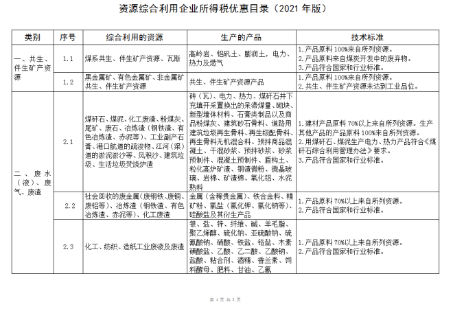 2.資源綜合利用企業所得稅優惠目錄(2021年版)