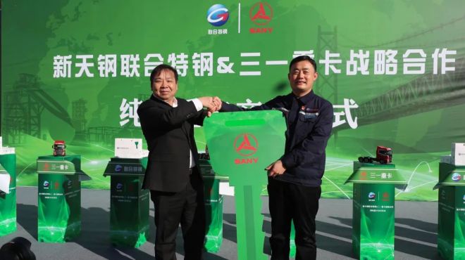 12月26日上午,新天鋼集團聯合特鋼公司和三一重卡戰略合作暨純電重卡交付儀式隆重舉行,30輛江山版純電重卡正式交付使用。