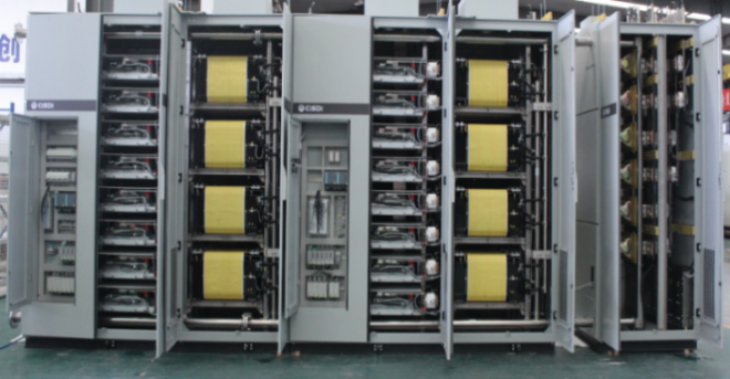 長城特鋼超級電弧爐搭載了中冶賽迪自主研發的新型IGBT柔性直流電源、雙陰極+風冷觸針底陽極裝備及控製技術,進一步提高冶煉效率,冶煉過程中電源輸出響應速度0.1ms,網側功率因數>0.95,電壓、電流波動<3%,電源裝置整體損耗可控製在3%以內,各項技術指標達到國際領先水平。該技術解決了現有交流電弧爐係統對電網衝擊大、輸出電壓電流調節能力低、抗衝擊能力弱、母線電容能量無法回收、電源裝置過壓過流保護能力弱的問題。