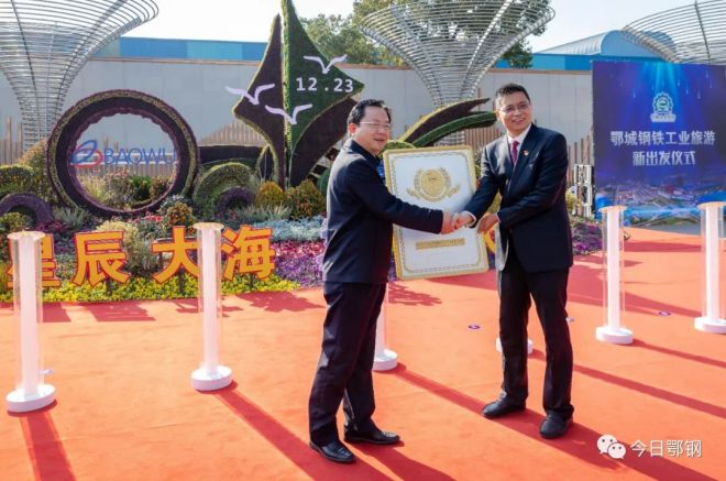 2021年12月30日,鄂城鋼鐵八星廣場彩旗飄飄,花團錦簇,隆重舉行公司工業旅遊新出發、3A級旅遊景區授牌儀式。湖北省文旅廳領導,鄂州市市委、市政府領導及鄂城鋼鐵公司領導共同按下啟動鍵,標誌著鄂城鋼鐵工業旅遊站在新起點,邁上新征程。
