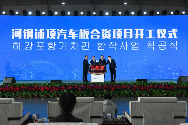 河北省發展改革委副主任韓國強,河北省工業與信息化廳二級巡視員紀永健,河北省國資委副主任李合義,唐山市委常委、秘書長陳宇,唐山市副市長、市發展改革委黨組書記郝誌軍,河鋼集團首席技術官、副總經理王新東,河鋼集團副總經理李毅仁,POSCO副會長、鋼鐵部門長金學童,POSCO營銷部門長鄭鐸出席儀式。河鋼浦項汽車板有限公司黨委書記、首席運營官周國平和首席執行官黃圭三分別介紹了項目情況。