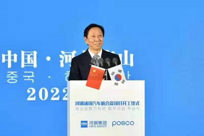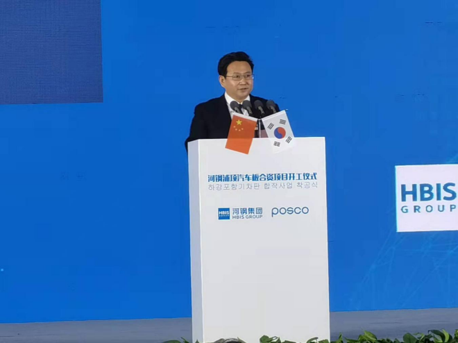 唐山市市長田國良在致辭中表示,河鋼浦項汽車板合資項目開工儀式,是深化中韓經貿合作的大事,也是河鋼集團、POSCO攜手共贏的喜事,更是唐山加快打造河北沿海經濟增長極的好事。河鋼、POSCO兩大世界500強企業共同選擇唐山、深耕唐山,放大了唐山產業優勢,推高了唐山產業地標,為鋼鐵行業由黑變綠、由舊變新、由大變強注入強大動能。田國良希望,河鋼集團、POSCO發揮行業示範引領作用,推動更多新技術、新項目布局唐山,帶動更多合夥人、投資者落戶唐山。