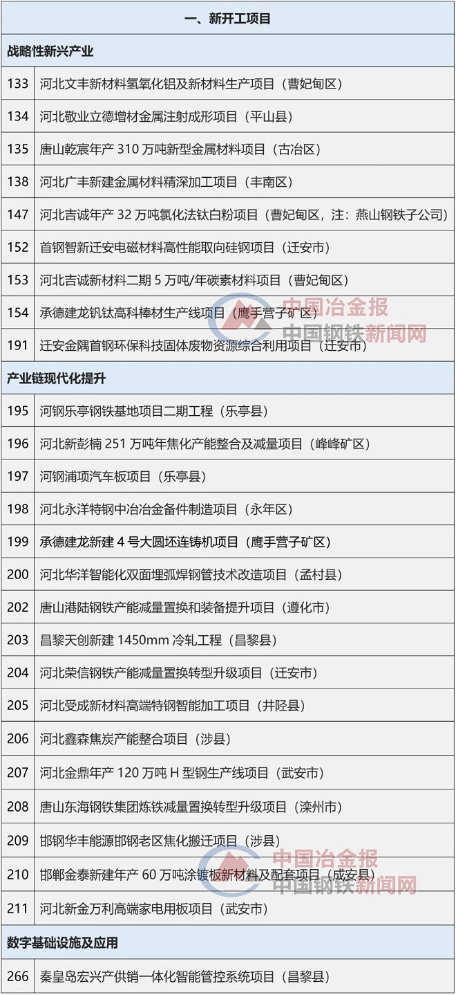 53大鋼鐵項目上榜《河北省2022年省重點建設項目名單》