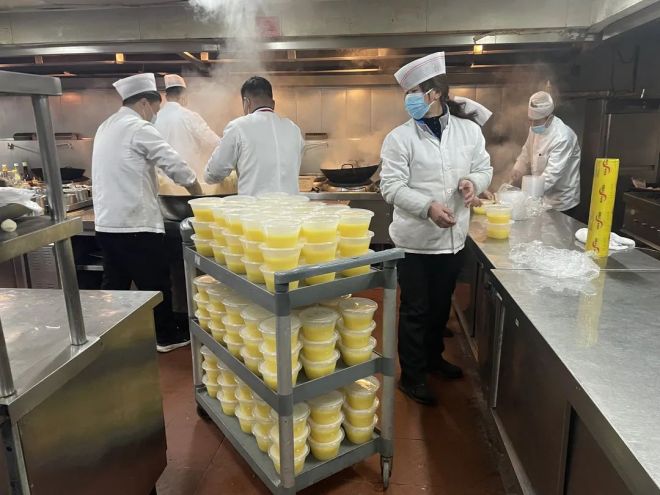 客房部員工全力做好自身防護,嚴格按照標準對客房及公共區域進行細致全麵的清掃、消殺;前廳部對在店客人耐心做好解釋工作,在客人全部撤離後對所有客房進行登記、製卡;廚房積極製定菜單,並對現有原材料進行清點、補充;辦公室人員停止辦公、全麵遷出;強化對擬預留人員的專業防護安全培訓……