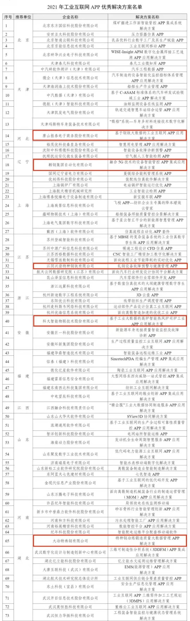其中,鋼鐵類APP優秀解決方案有5個,見下表(圈紅部分):