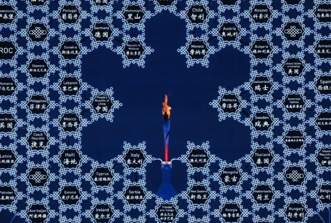 “屏幕中,AR(增強現實)xuehuazaidiqiudeyingchenxiatongbuxialuohuiju,xiangzhengrenleimingyungongtongtidedaxuehuaaoyoutianji,zuizhongfeihuidipingzhongxin。zaiwanzhongzhumuxia,yigehanyousuoyoucansaiguojiahediqumingcheng、長約15米的雪花形火種裝置緩緩升起,浪漫純潔、熠熠生輝,閃耀‘鳥巢’中央、直擊觀眾內心,象征全世界人民緊密團結在一起。”開幕式視效總監王誌鷗闡釋道,“特別是在疫情下舉辦的本屆冬奧會,這朵雪花講述的不僅是‘我’的故事,更是‘我們’共同的未來,凸顯人類命運共同體的重要意義,昭示全世界必須團結互助,才能戰勝困難。”