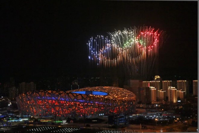 冬奧焰火:“雙線五環”寓意“雙奧之城”