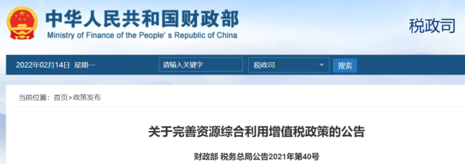為推動資源綜合利用行業持續健康發展,日前,財政部、國家稅務總局印發《關於完善資源綜合利用增值稅政策的公告》(財政部 稅務總局公告2021年第40號)(以下簡稱第40 號公告),明確自2022年3月1日起執行新的資源綜合利用增值稅政策。其中,符合條件的企業,廢鋼鐵可按30%退稅。