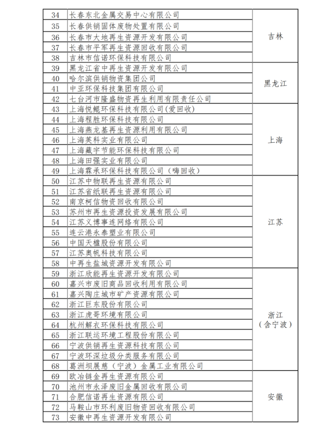 第40號公告的下發,對再生資源虛開發票泛濫的問題提供了政策引領,此公告下發的第二天,國家商務部發布了《關於重點聯係再生資源回收企業名單的公示》,其中涉及符合最新資源綜合利用增值稅政策的169家再生資源回收企業。詳見如下名單: