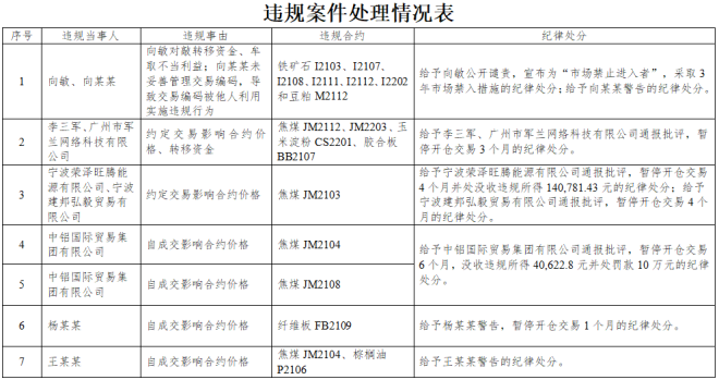此次違規涉及焦煤、鐵礦石多品種,違規行為包括對敲轉移資金、牟取不當利益,約定交易影響合約價格、轉移資金,自成交影響合約價格等。