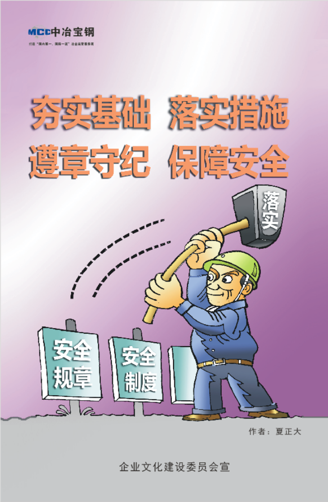 邁入2022年,為順應企業發展新形勢,中冶寶鋼企業文化建設委員會辦公室策劃製作了2組7幅具有企業特色的文化海報,通過漫畫這一喜聞樂見、傳播力強的藝術形式,將中冶寶鋼安全文化帶進基層、深入班組,讓安全文化內化於心、外化於行,形成人人懂安全,人人要安全,人人管安全的良好氛圍,營造和諧、健康、幸福的中冶寶鋼“家文化”,實現員工對美好生活的向往,為公司新一輪高質量發展彙聚了強大的精神動力。