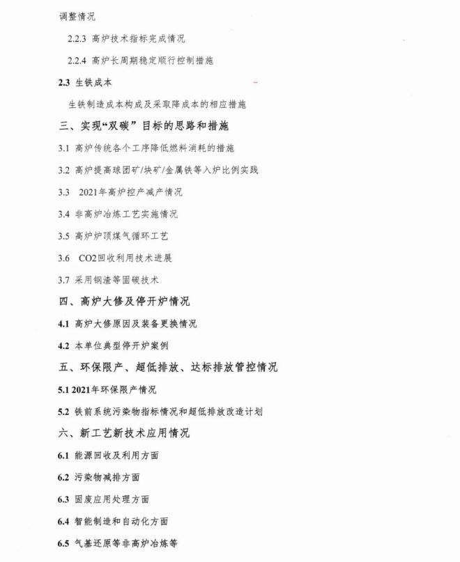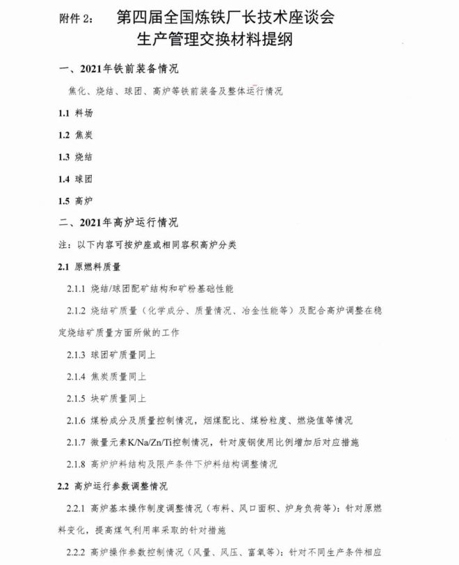 1. 總結2021年各單位煉鐵生產運行和技術創新情況(具體見附件2:交換材料提綱)。