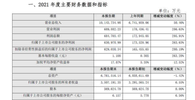 首鋼股份發布的業績快報顯示,2021年營業總收入1333.98億元,比上年同期增長66.85%;歸屬於上市公司股東的淨利潤70.24億元,同比增長293.19%,這是首鋼股份自1999年A股上市以來的最好業績。