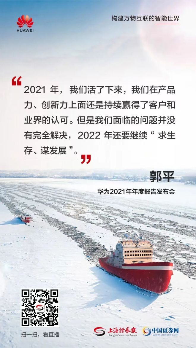 郭平表示,華為麵臨的問題還沒解決,2022年華為還要繼續求生存、謀發展,依靠持續地強力投資研發領域。