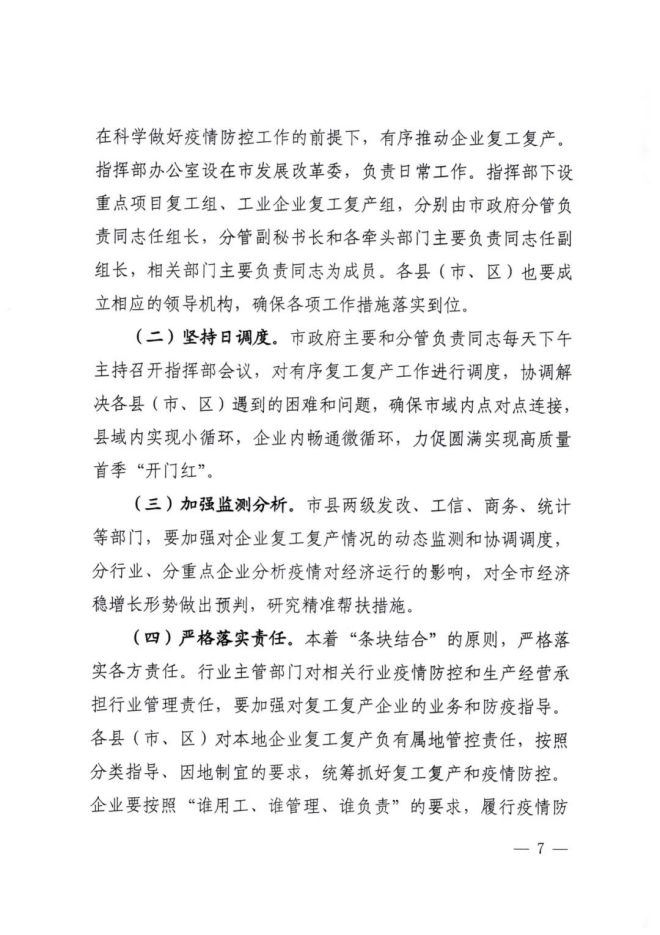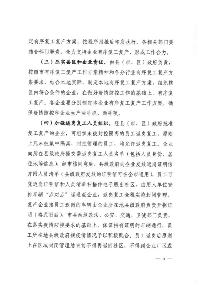 企業職工跨縣區流動一律暫停,市域內上下班,要嚴格規定路線,實行兩點一線閉環管理。
