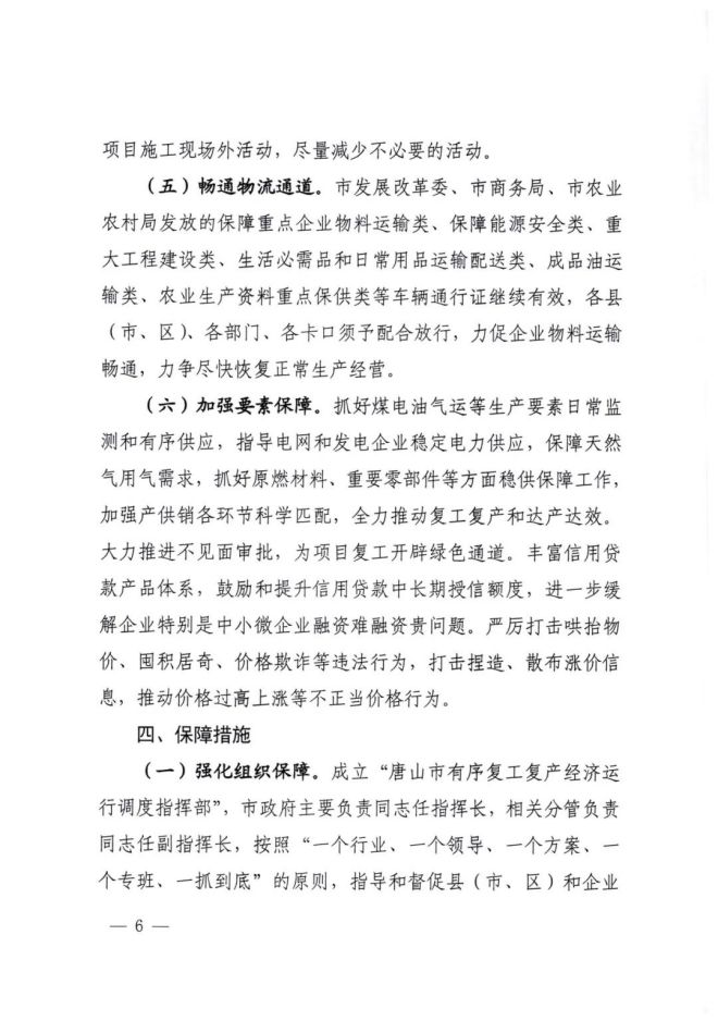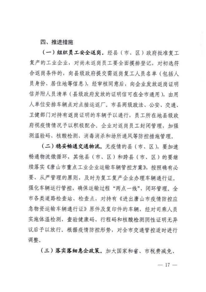 近日,唐山逐步解封,全力推進複工複產!唐山市人民政府關於印發《唐山市有序複工複產工作方案》的通知全文如下——