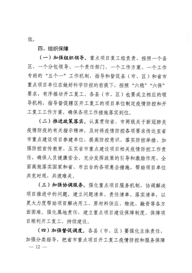 9.工業企業、建築工地要係統做好防控準備工作,盡可能封閉管理,可以開工。需要指導和服務的,與屬地和行業主管部門聯係。