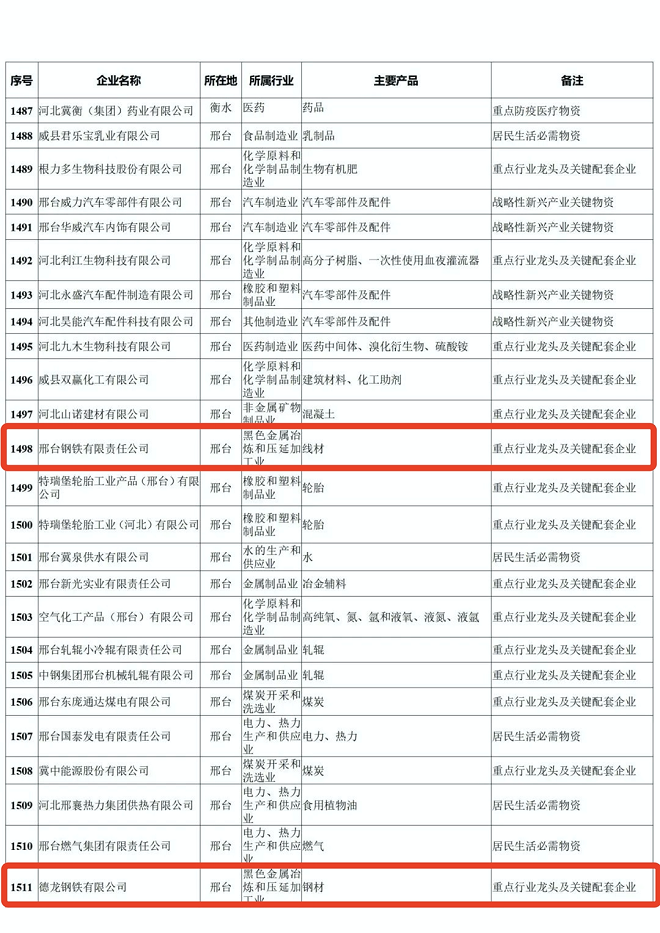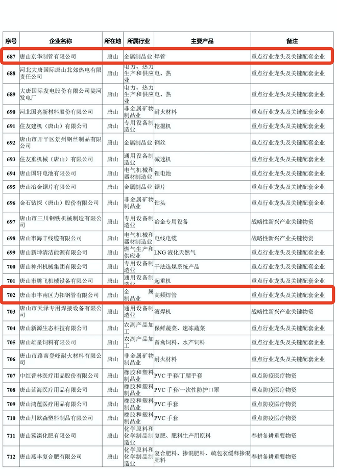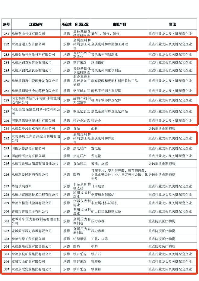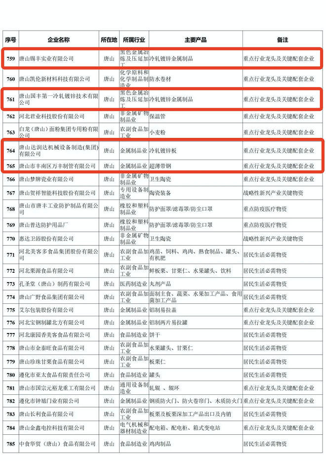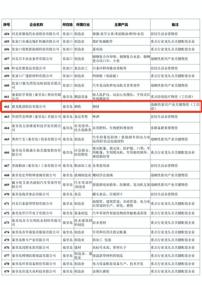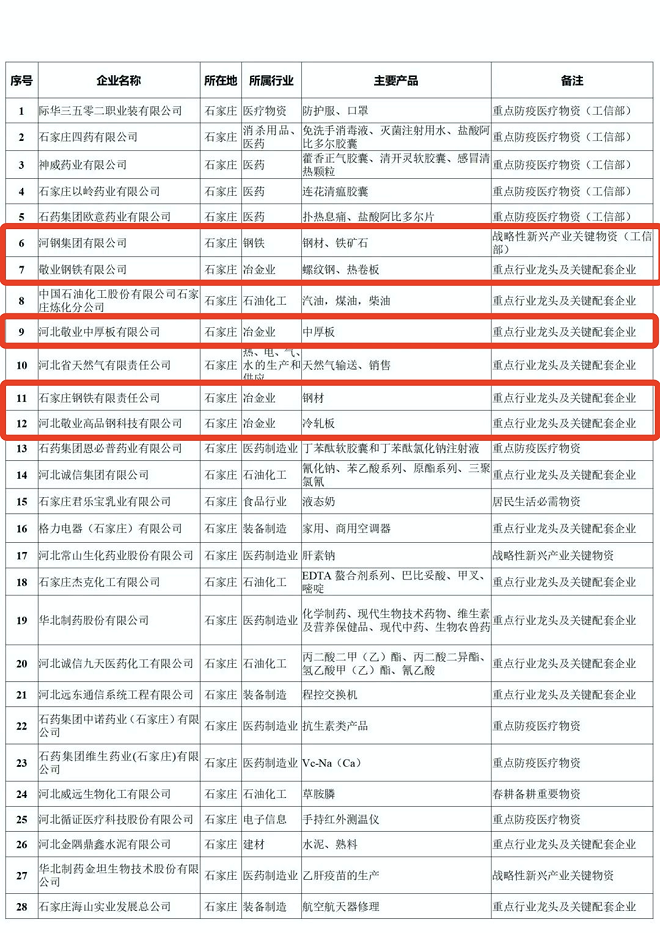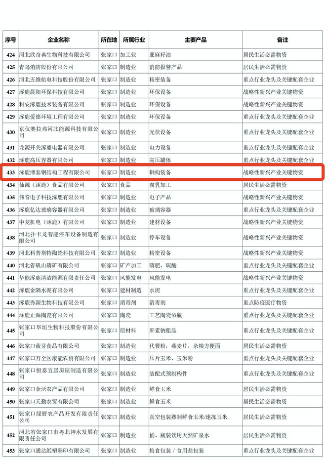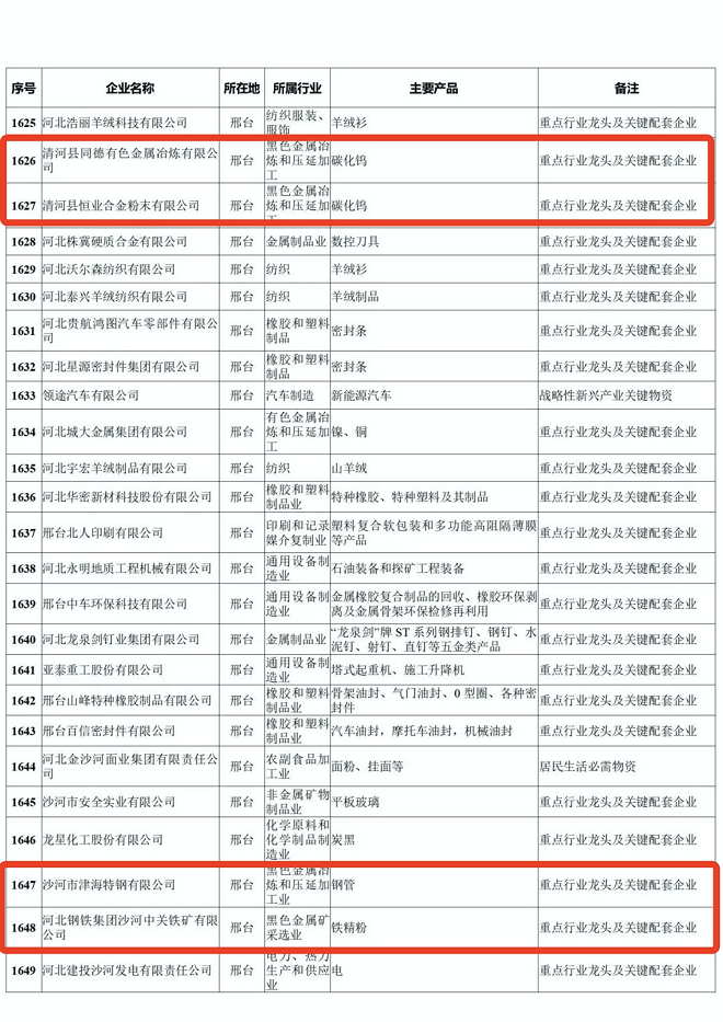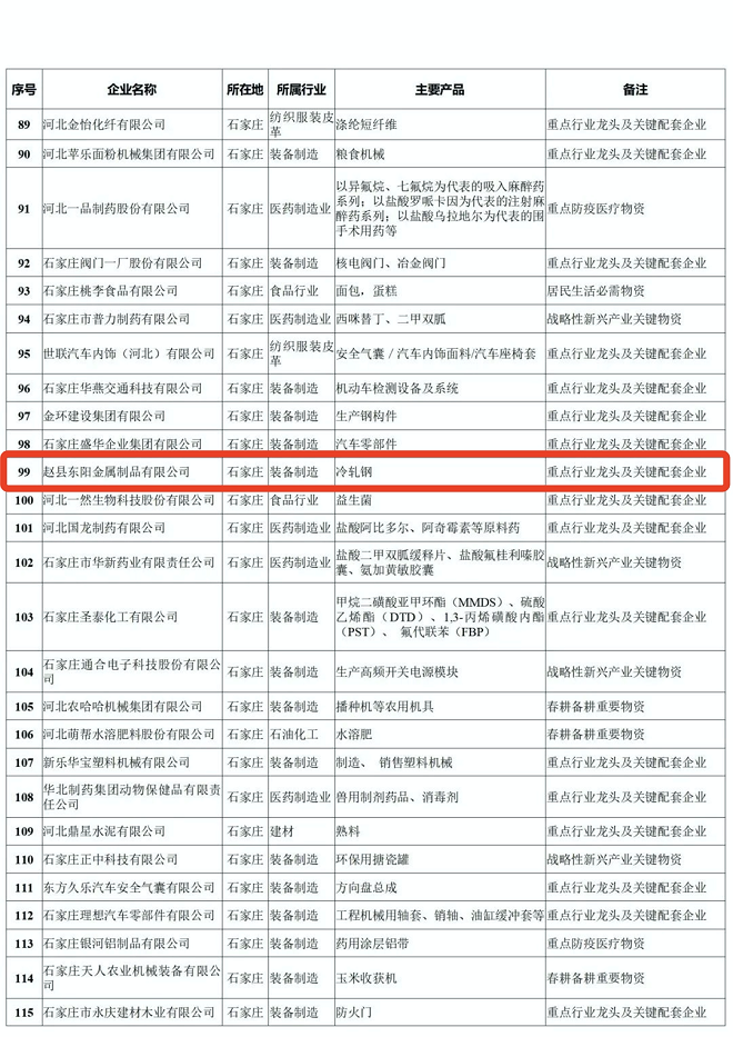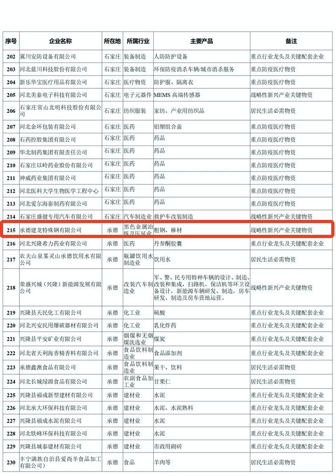 河北省重點產業鏈供應鏈“白名單”企業