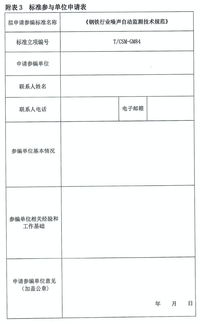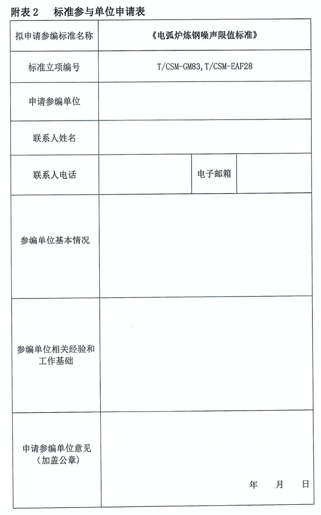 關於《電弧爐煉鋼噪聲測試標準》《電弧爐煉鋼噪聲限值標準》《鋼鐵行業噪聲自動監測技術規範》立項研究及征集標準參與單位的通知