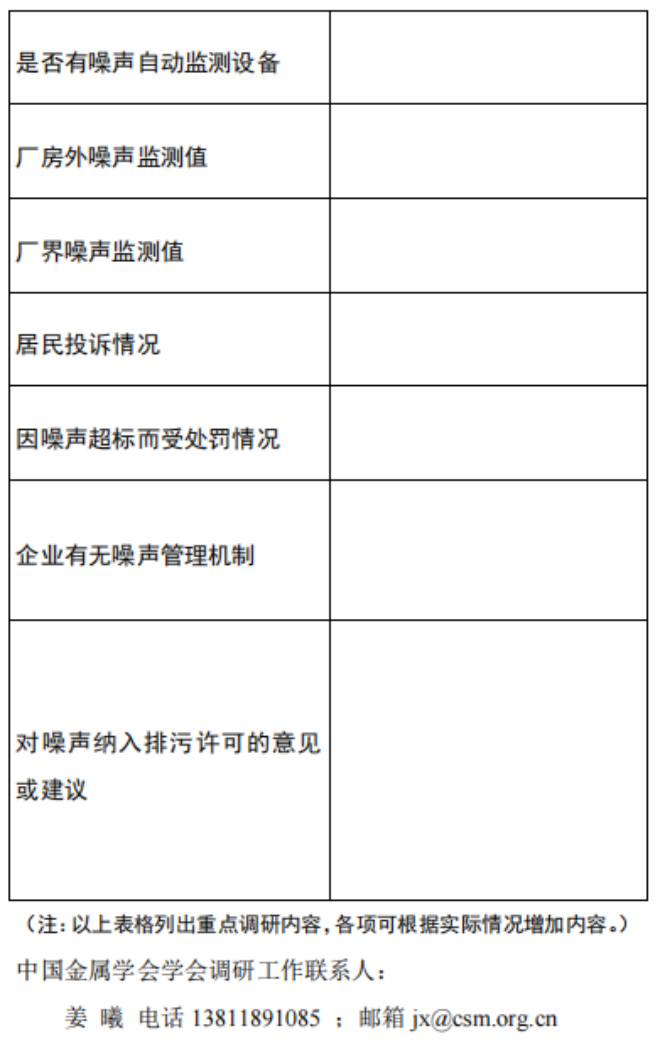 中國金屬學會關於開展鋼鐵企業噪聲汙染現狀調研的通知