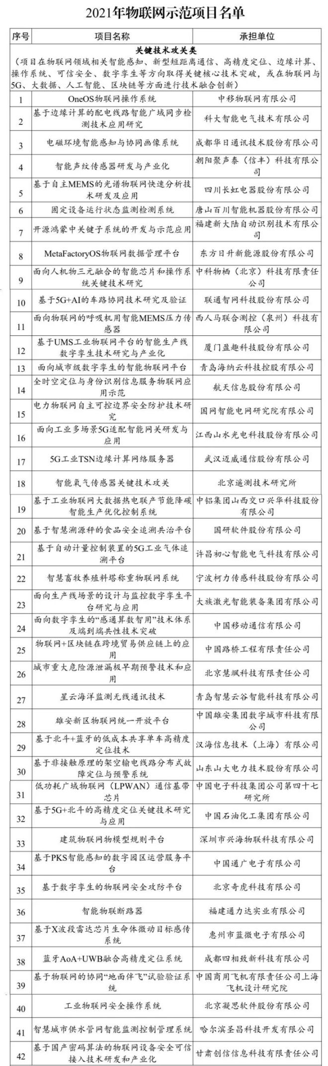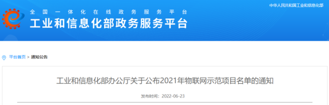 近日,工業和信息化部辦公廳發布了《關於公布2021年物聯網示範項目名單的通知》(以下簡稱“《通知》”)。
