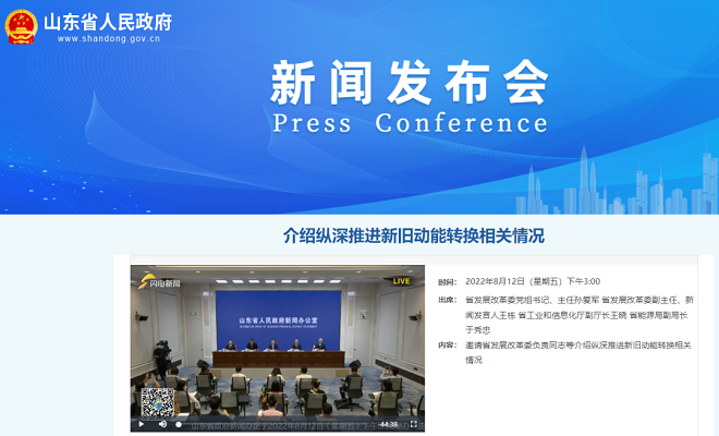 8月12日,山東省政府新聞辦舉行新聞發布會,會上,山東省工業和信息化廳副廳長王曉回答了記者提問並介紹近年來在淘汰落後動能、改造提升傳統動能等方麵的具體工作及下一步措施。