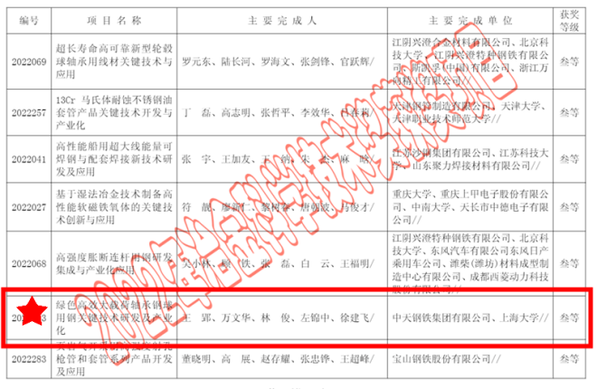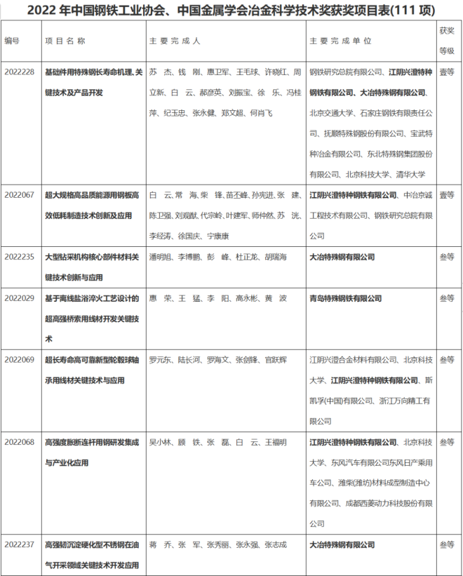 2022年度冶金科學技術獎獲獎名單公布,中信泰富特鋼集團共斬獲7個獎項!