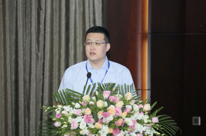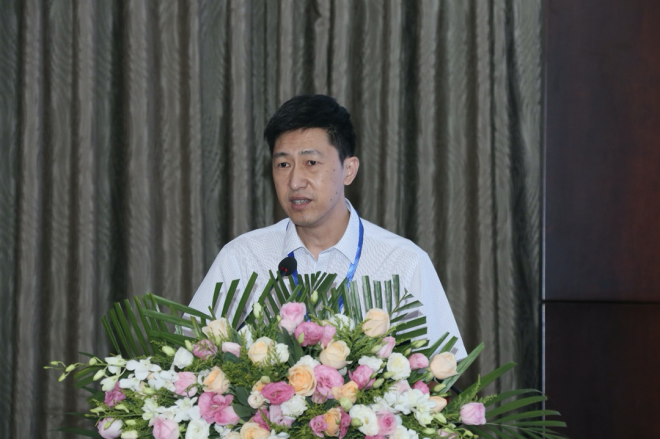 圖為李毅仁作《碳中和願景下河鋼集團低碳發展技術實踐與展望》報告