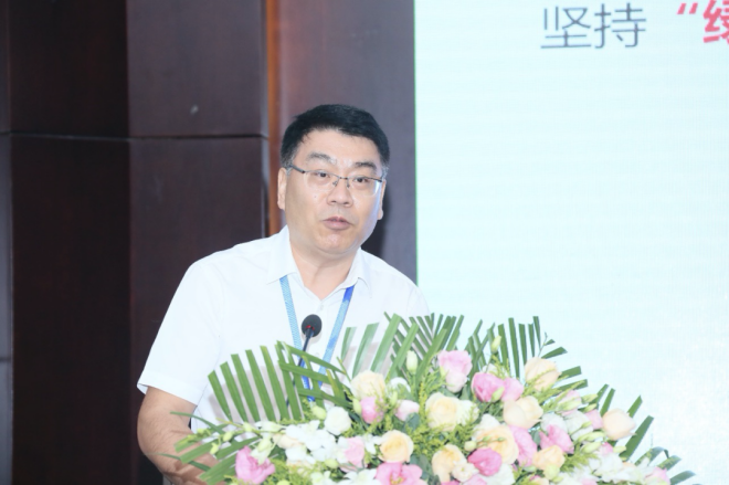 圖為張福明作《首鋼綠色低碳創新實踐與展望》報告
