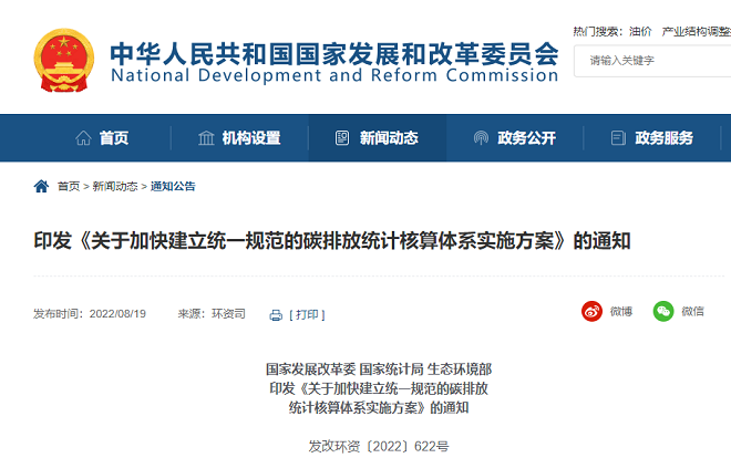 三部委發布《加快建立統一規範的碳排放統計核算體係實施方案》