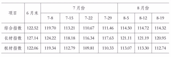 7月國內市場鋼材價格降幅加大,8月呈止跌趨升走勢